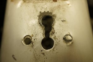 勝手にボルトを潰してナットが取れない様にしておきます。