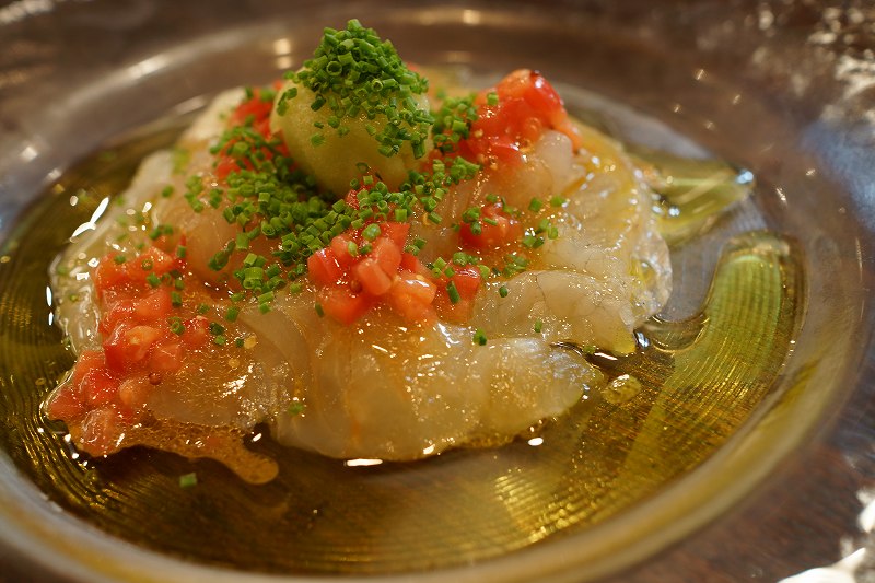 本日のカルパッチョはスズキさん トマトも細かく