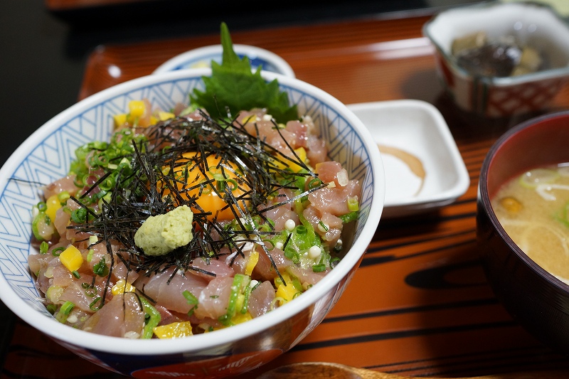 本日は”まかない丼” 卵の黄身もおいしいです。満足