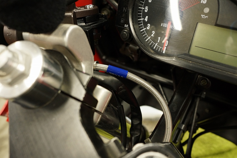 ブレーキホースが不安とコトですので取りまわしを変更しましょう。