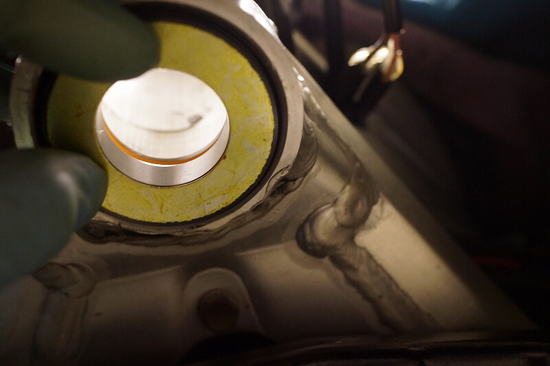 いつも通りにしっかりとNC100を封入致します。アッパー側は形状の関係でシールが使えず純正の金属カバーとなります。