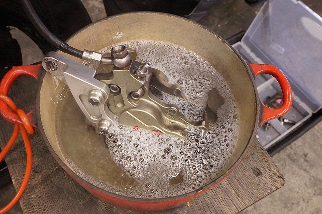 キャリパーは多少上下に動きますのでフロントを浮かせて廻りが良い現状に戻しております。
