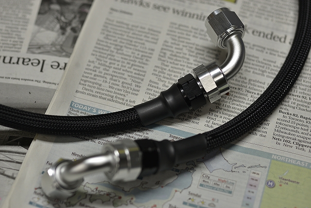 メッシュホースは当然ですが傷や接触があっても困りますので網で保護してサンイチでガッチリ固定しておきます。見栄えも上々です。