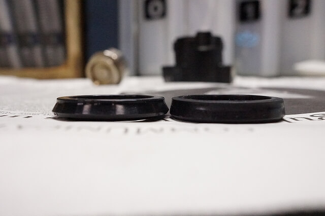 カップは傘の様な形状で油圧を受けておりますのである程度萎んでも誤魔化してくれます。しかし元の大きさである方が負担が少ないと思います。