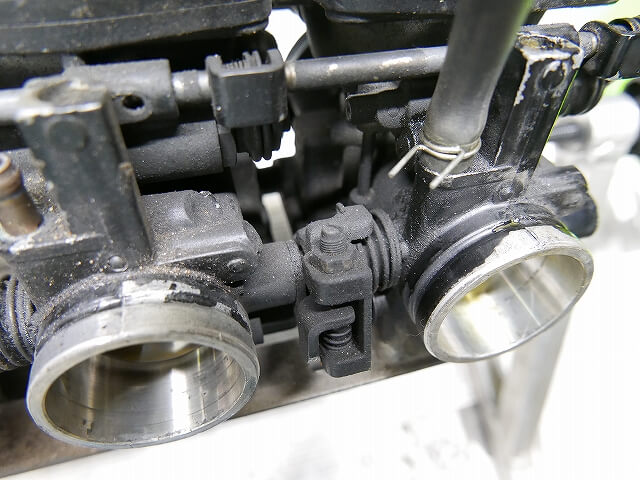 キャブレターの外観はそこまで汚れておりません。黒いからと言うのもありますが・・・