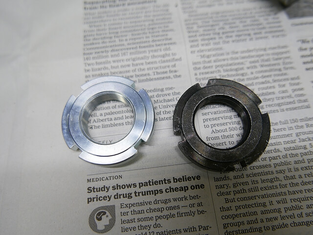 ステムナットはアルミGS1200SS用にしました。純正部品ながら肉抜きがニクイ感じでGOODです。