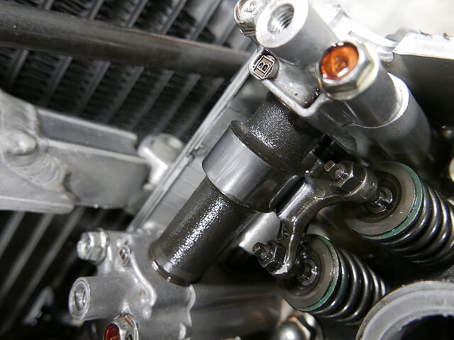 ロッカーアーム式はカムが高い所にありますのでどうしても厳しい条件で使われおります。使い続けると単純にローカムになって行きロッカーアームのスリッパーが大きく摩耗して打音が尋常ではなくなる感じです。