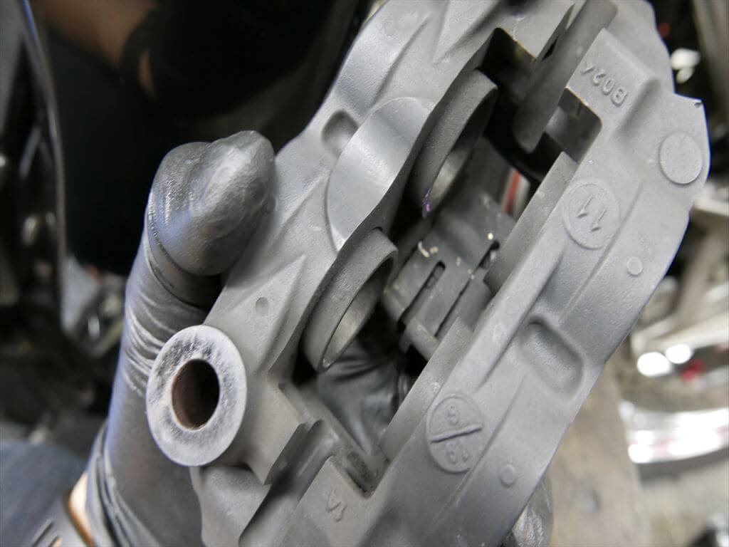 ピストンの作動性は問題ありません。ダストがすごいたまってましたね。