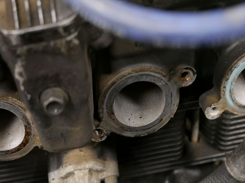 インマニ周辺も腐食してますね。ゴム部品が今後どうなるかわからないので間違いなくキャブ分解時は交換しておきたい箇所ですよ。