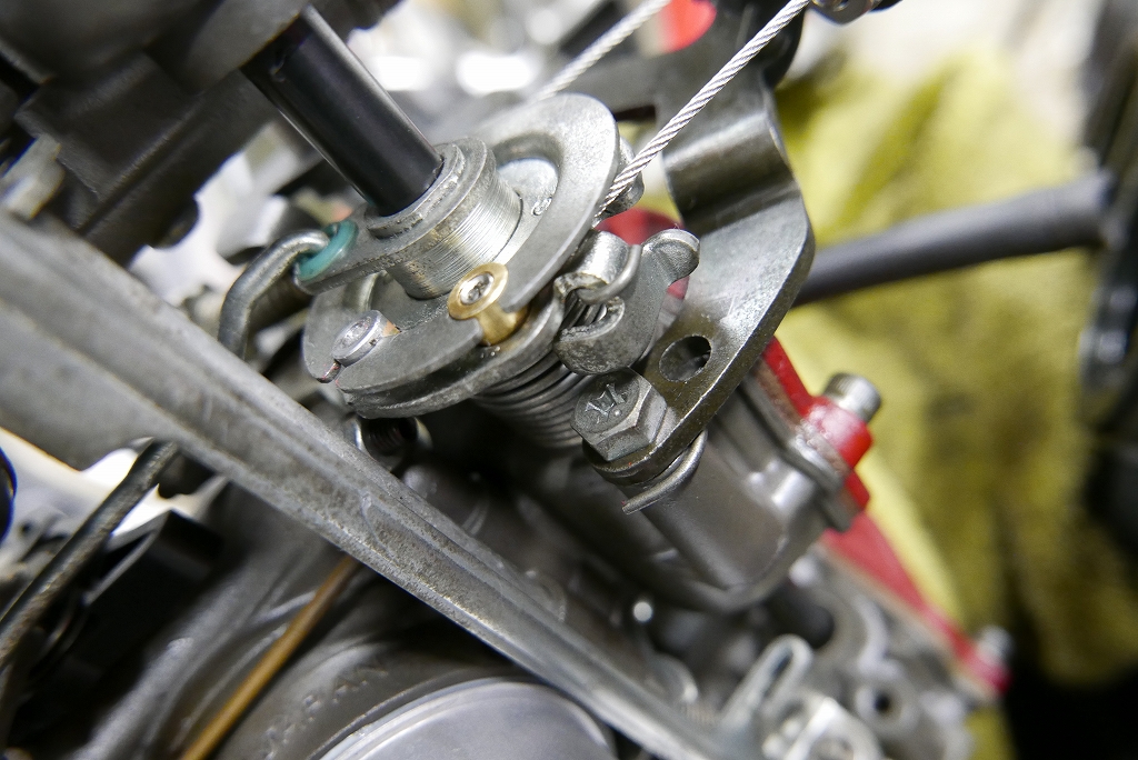 アクセルワイヤーはタイラップで固定すると作動に影響しますのでなるべく使わない方がベター。網チューブの様なものに通しておけば平行に出来て擦れにも強く見た目も良いでしょう。結局アウター長650MMになりました。