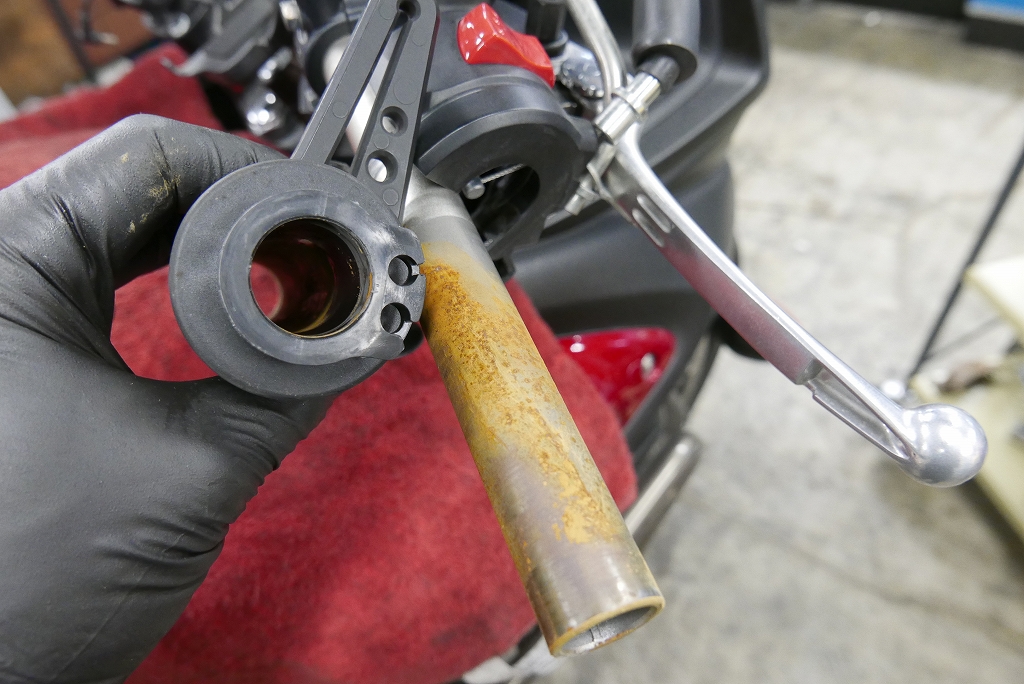 ハンドルが錆びてますね。落として防錆して組み付けましょう。
