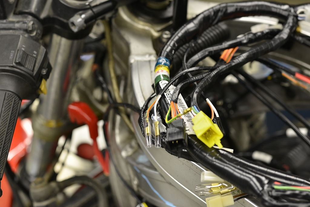 ではメインハーネスに移ります。まだ純正で出るので非常にうれしいです。長く乗ると決めたら一回交換しても良いと思います。安心度が違いますよ。