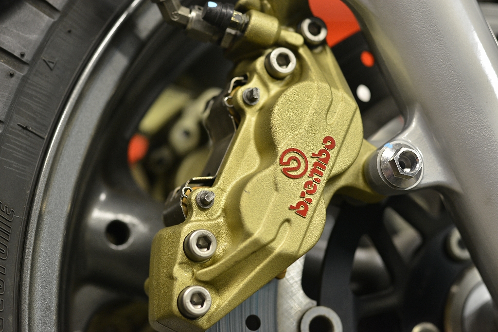 この鋳物ゴールドブレンボは実に汚れが落ち辛いです。この様に黒いダストがブラシでは落ちずにたいてい諦めます。