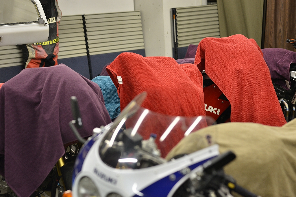年越し準備です。基本的にお預かりしている車両にはタオルケットを掛けて保管しております。