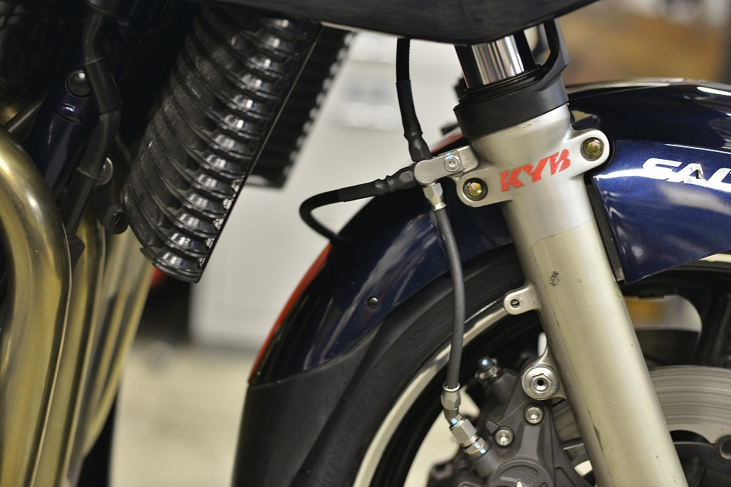 ブレーキホースがオイルクーラーに接触するのでレイアウト変更も行います・