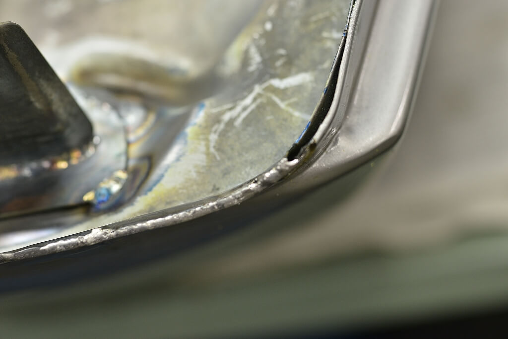 GSX1100E通常の固定耳はカット。TIGした所、中にも塗料が入っている?みたいでブスブス言ってくっつかないのでハンダを流してやりました。