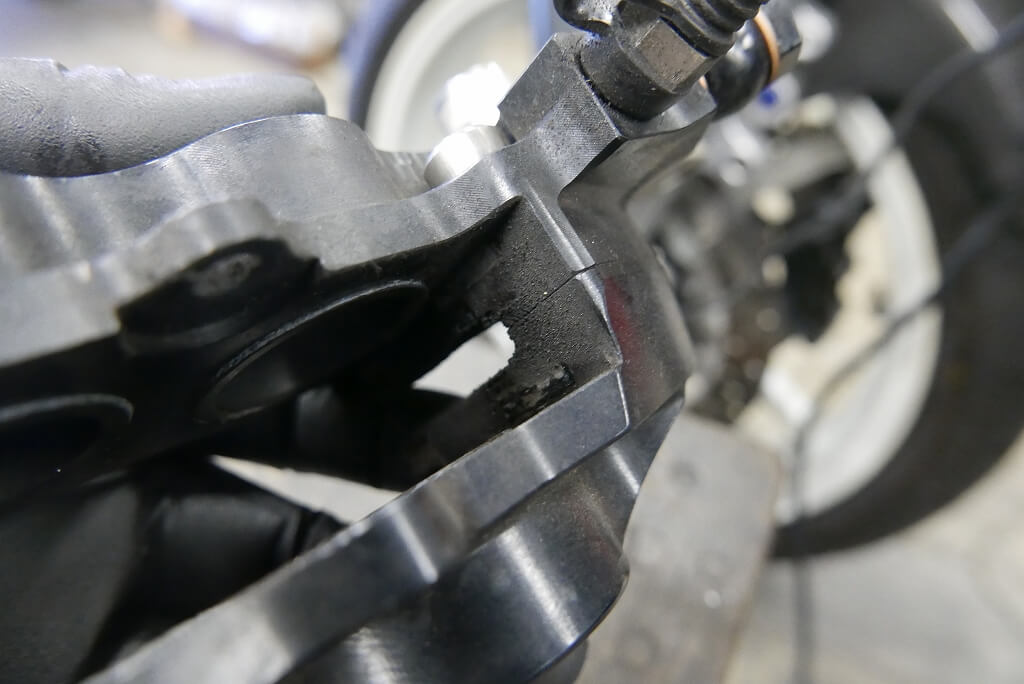 キャリパーの汚れはそこそこですね。この時点ではクラックに気が付いておりません。