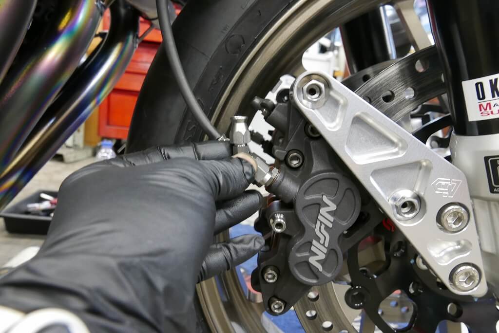ストレート→45度*2個 あとはオリーブとメッシュホース交換して組み直しです。この様に再利用できるホースってとても良いと思います。