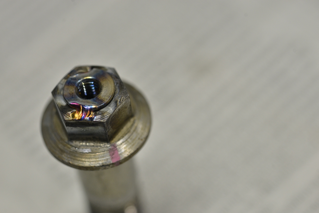 リアに中空の素敵なボルトがいましたので此方にロックナットを丸く削ってインして溶接です。