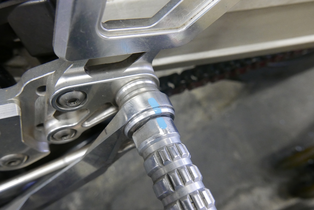 シフトアームを外すと1ノッチわかり辛い。マーキングが剥がれる。ステップバーに記しておくと判りやすいです。