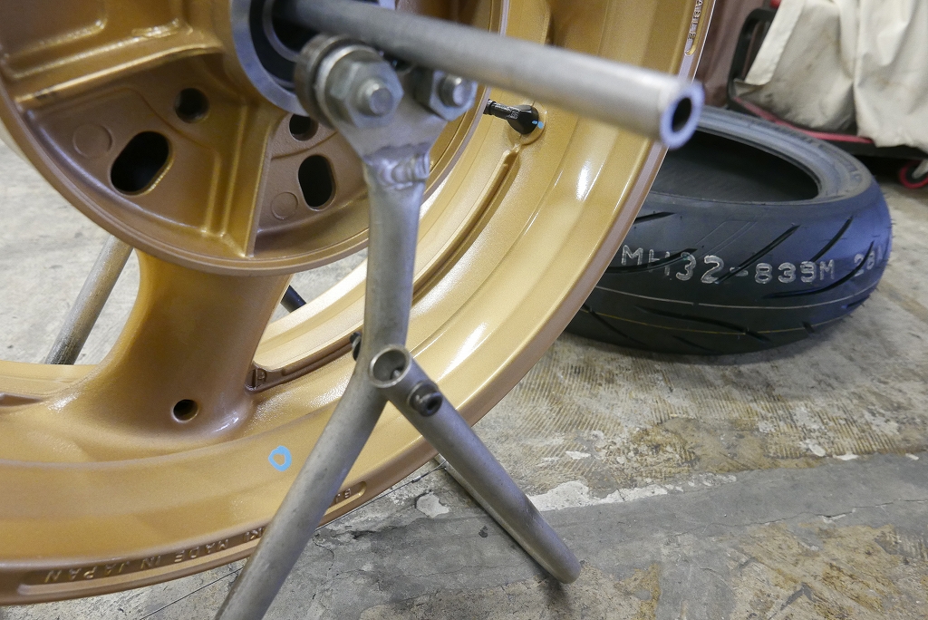 ホイールの重点とタイヤ軽点を合わせてウエイト少な目作戦です。