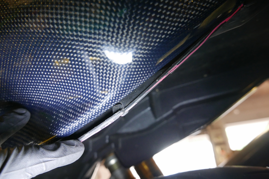 ワッシャー点付けしてクリアー。もちろんフェンダーに穴を開けてまでリベットでは固定しません。