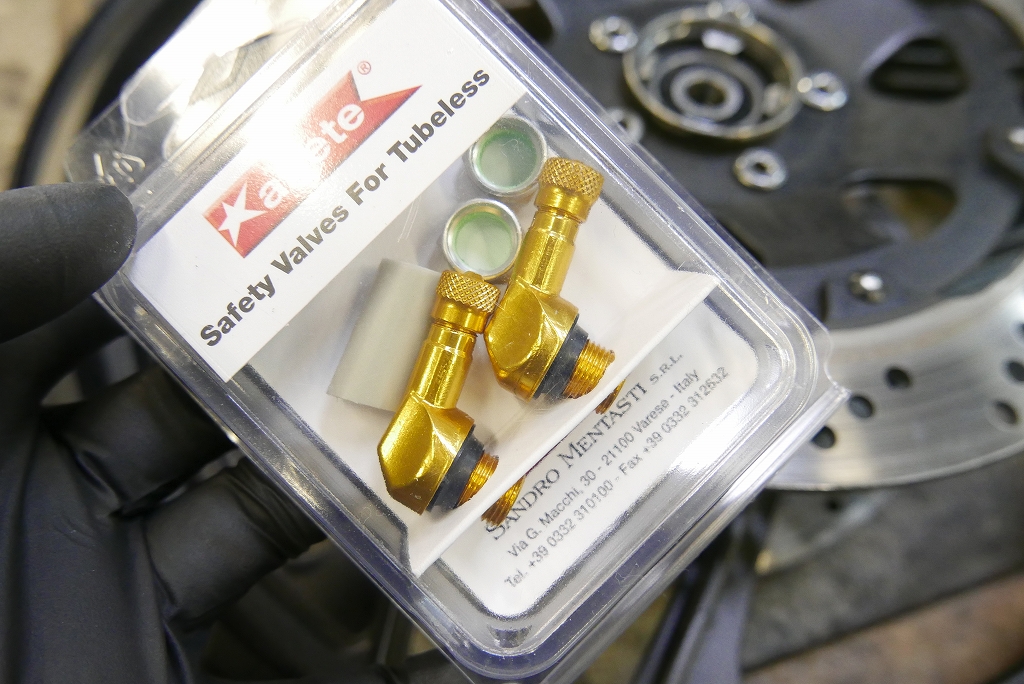 エアバルブはアリート製アルミをチョイス。劣化して切れる心配は減ります。