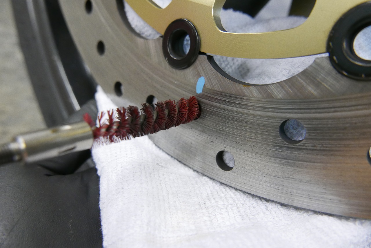 ディスクホールをお掃除です。たまにカスを除去し脱脂してブレーキギューギュー掛けて当たり付け直すとまた新鮮ですよ。