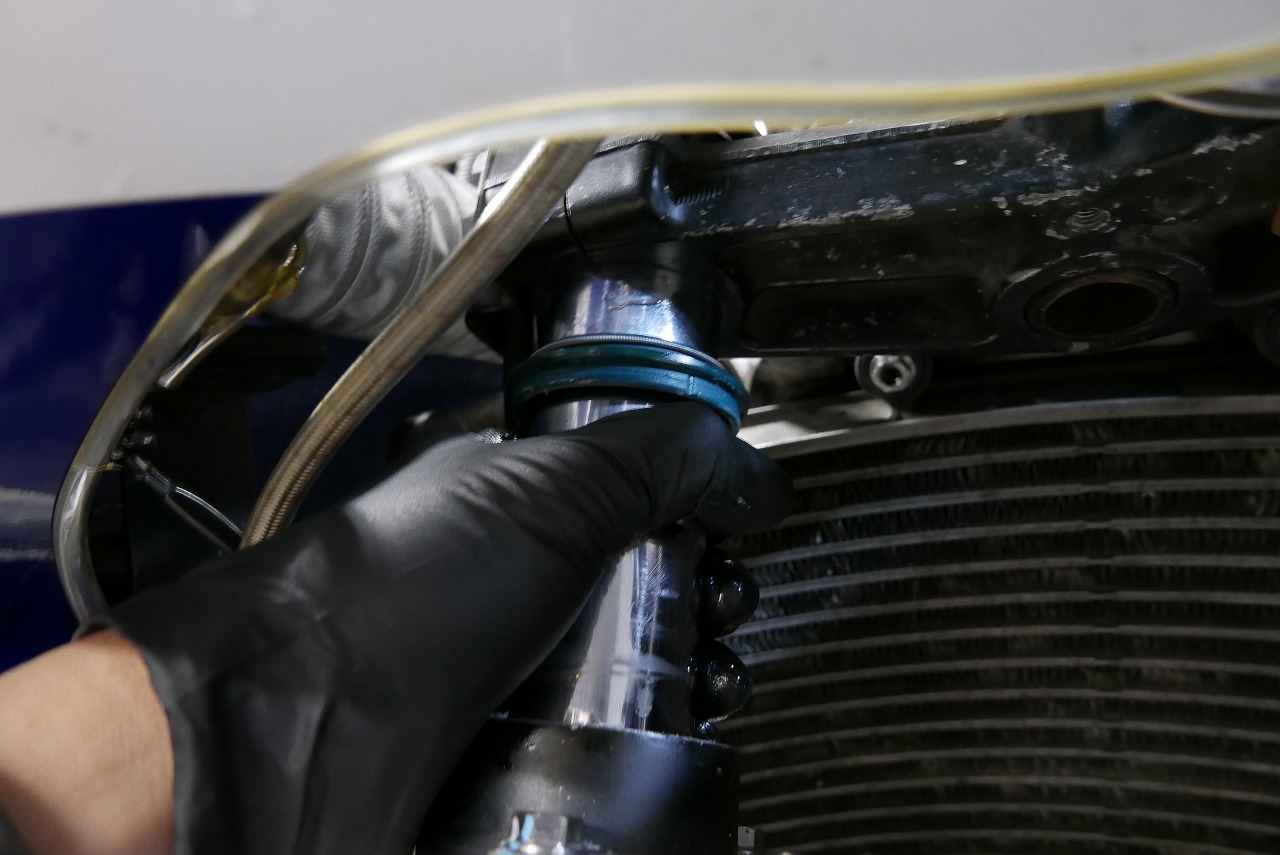 フロントフォークの清掃・注油です。下は注油、上は防錆してあげましょう。
