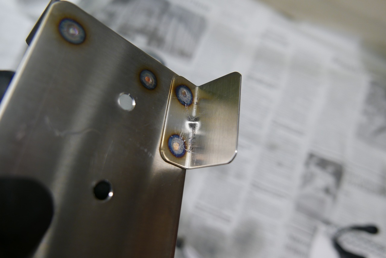まず①ヘッドライトステーに共締め作戦。穴開け・曲げ・リブです。(SUS304HL)