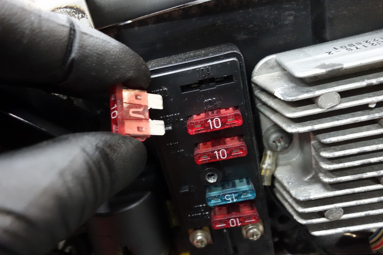ヒューズを1つ1つ確認しておきます。基本的に見ない箇所だからこそ確認するのが点検なのかもしれませんね。
