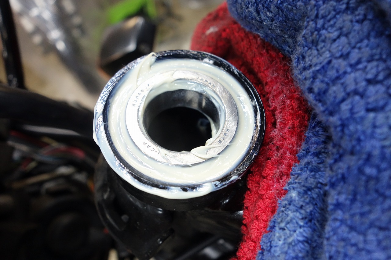 上下ベアリングにしっかりニューテックNC100グリスを塗って組み付けます。