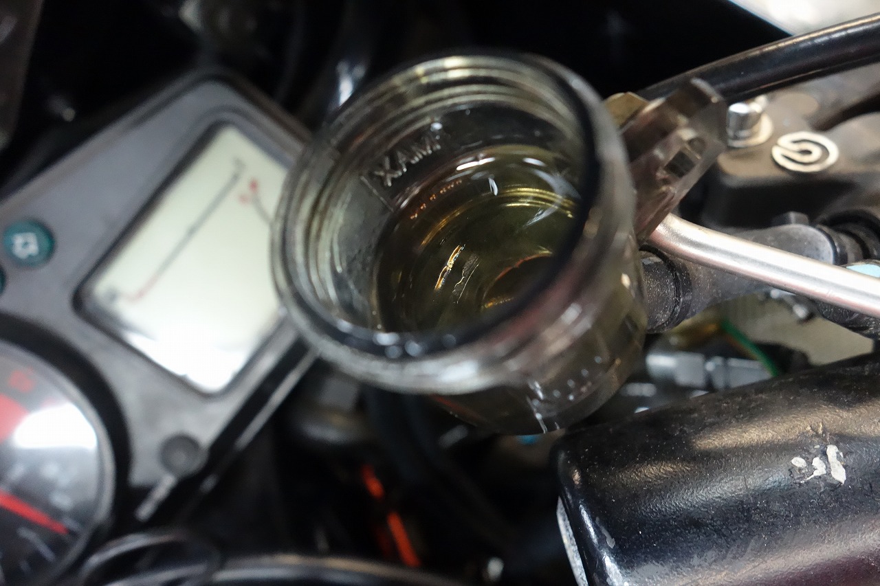 ZX12R(A型) 車検 ELFオイル交換 ブレーキホース製作 フルード交換 2019 10/02 日々の出来事(業務日誌) 2019年10月2日 ZX12R(A型)車検とブレーキホース製作とELFエンジンオイル交換・フルード交換ご用命です。 ローダウンしたら分岐がフェンダーに当たるとの事・・・なるほどです。分岐なしで”h型”にて新設致しました。これで安心かと思います。 フルードはゴールデンクルーザーDOT4へ交換致しました。 エンジンオイルはELF MOTO4RACEへ交換致しました。 オイルを抜いている間にチェーンを清掃と注油してお掃除しました。 A型にB型のフューエルタンク取り付け問題はこれで解決な筈?です。これで臭くなくなるといいなぁ~後は試乗して完成となります。 日々の出来事(業務日誌) SUSブレーキホース ZX12R オイル交換 車検 URLをコピーしました! 【メンテ・整備】電気編③楽しい?使える純正部品流用 概要はブログにて バイク・オートバイ モトブログ 【加工・機械】超便利!イライラしないタングレスヘリサート インサートで確実楽々挿入♪ 関連記事 GSX1300 B-KING デコメンテ DIDサンスターチェーンKIT 2020年1月22日 GSXR1100Nちょこちょこの巻 2013年11月25日 CBR900RR-Dニョロニョロピーの巻き 2010年11月18日 バンディット1200K6 ノーマル戻し等 2014年6月13日 BOOM BOOM SATELLITES の巻き 2007年7月17日 なななんと?KR500風味のRG500Γ!予算内で依頼箇所抜粋して作業しますですの巻 2025年4月13日 スポーツスター1200 ちょいちょい変更の巻 2013年11月3日 まじーなGSFのまき 2005年12月28日
