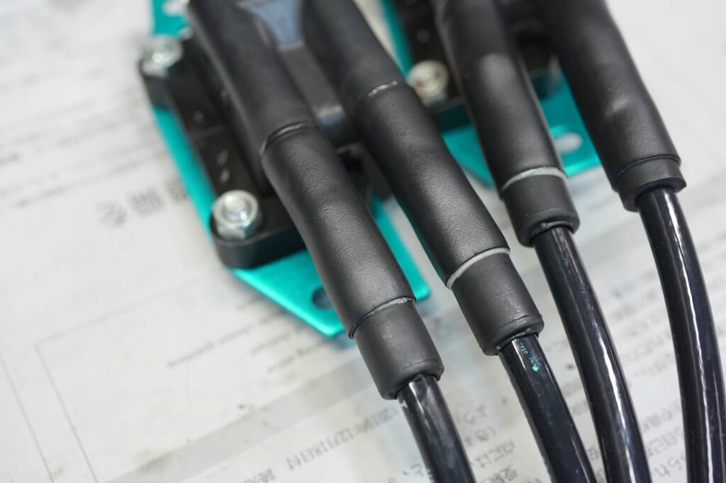 加締めた後に無駄な部分にはサンイチにて収縮しておきます。