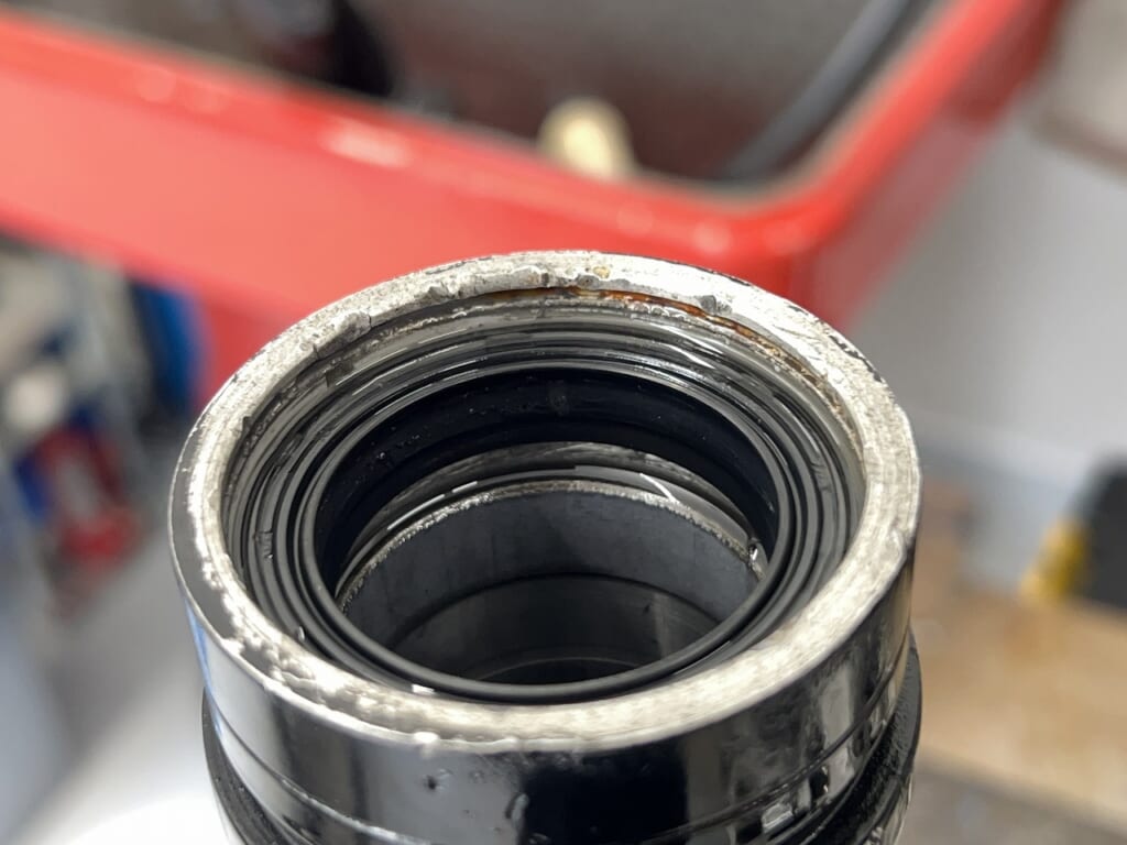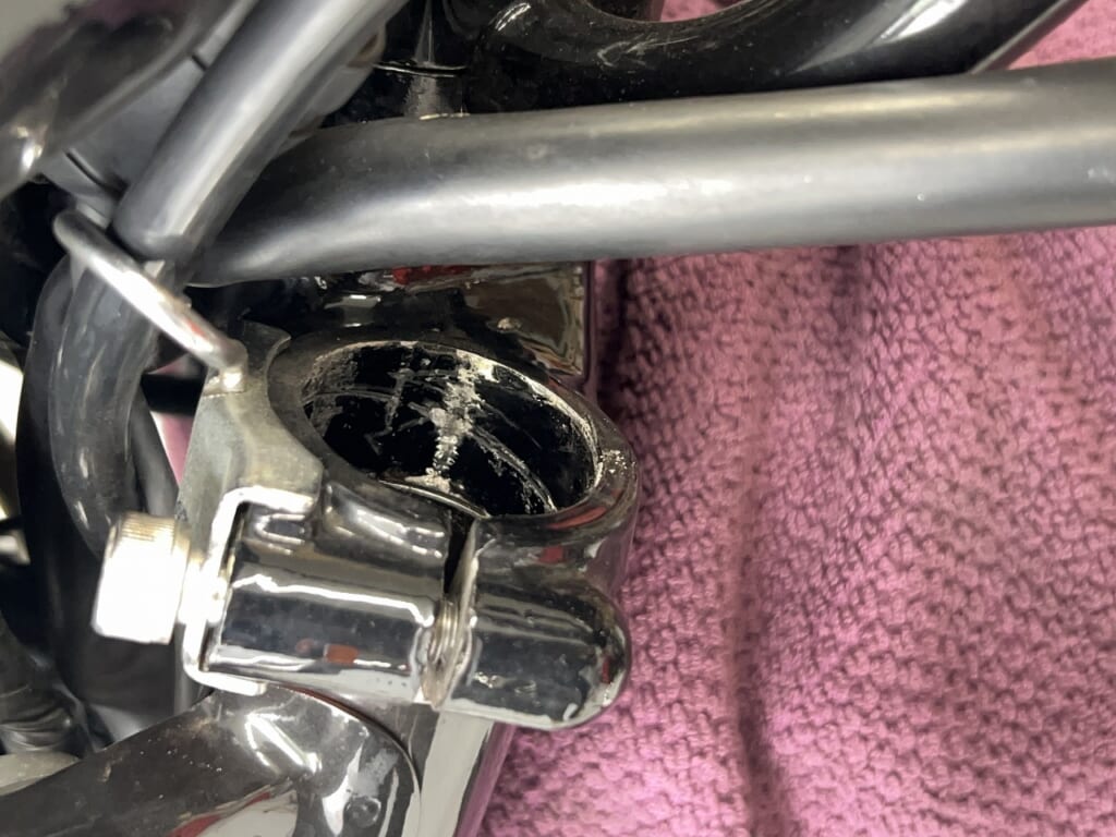 フォークの座りを良くしてから締め付けるので交換しておきますね。