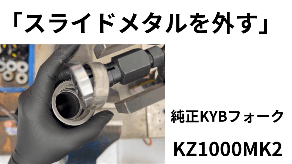 「フロントフォークスライドメタル外す」純正KYBフォーク。KZ1000MK2/Z1RなどのZ系やGSX750/1100Sにも使えるよ。