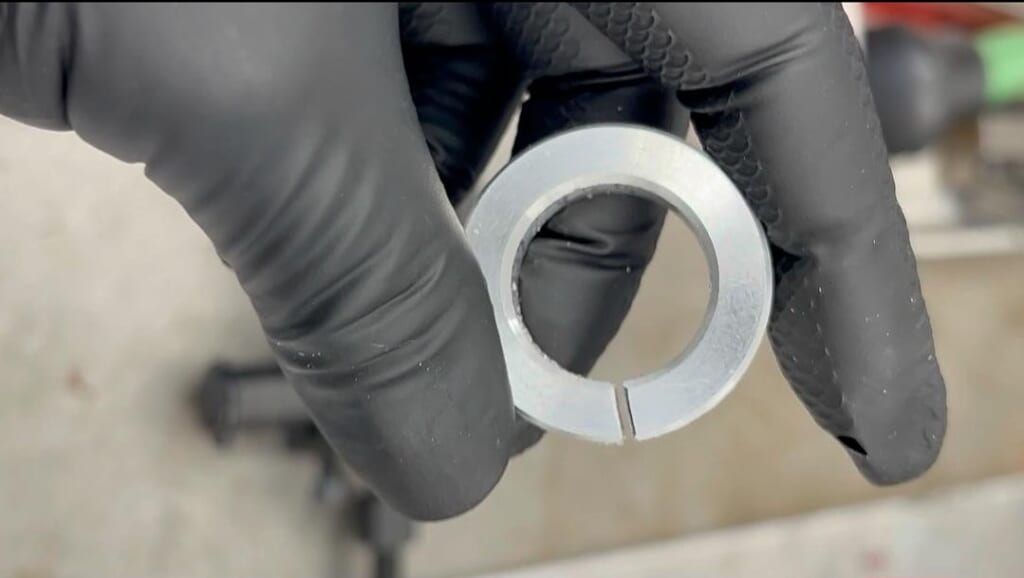 外径36.00mm 内径25.00mmで旋盤で作り、スリットは面倒なのでコンターで切りました。