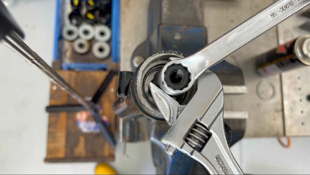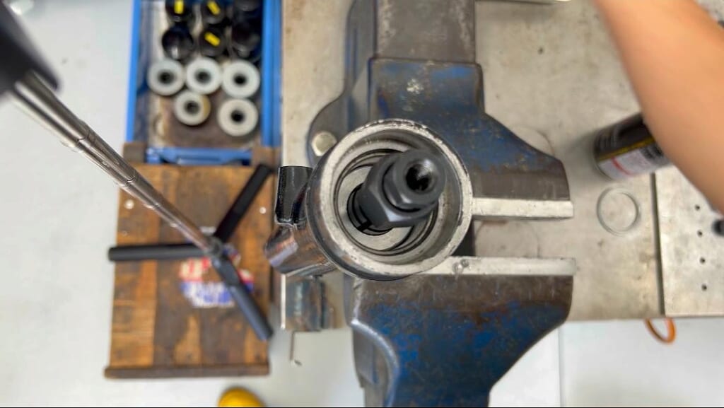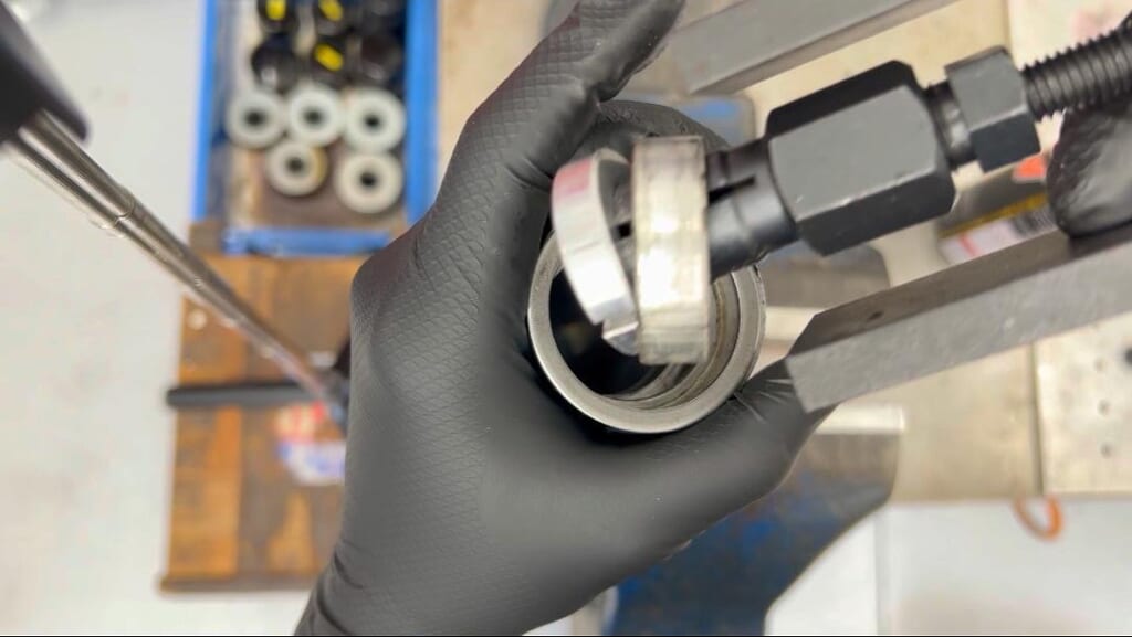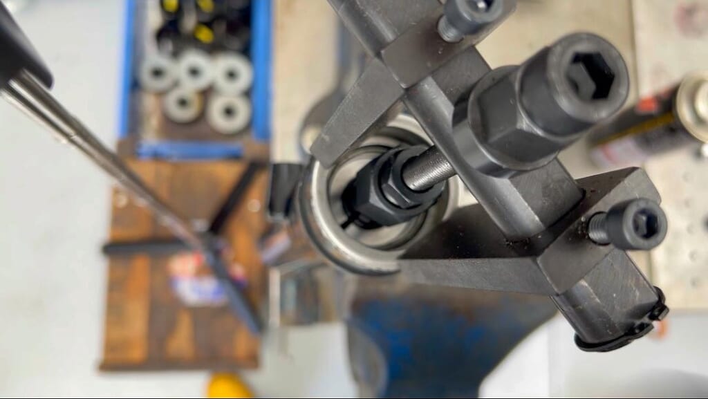 ベアリングプーラーにセットし少しだけ手でプーラーにテンションかけてあげてください。