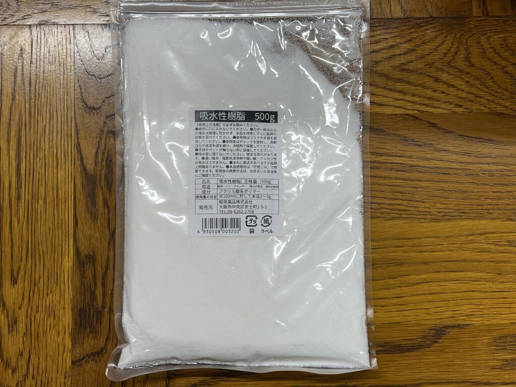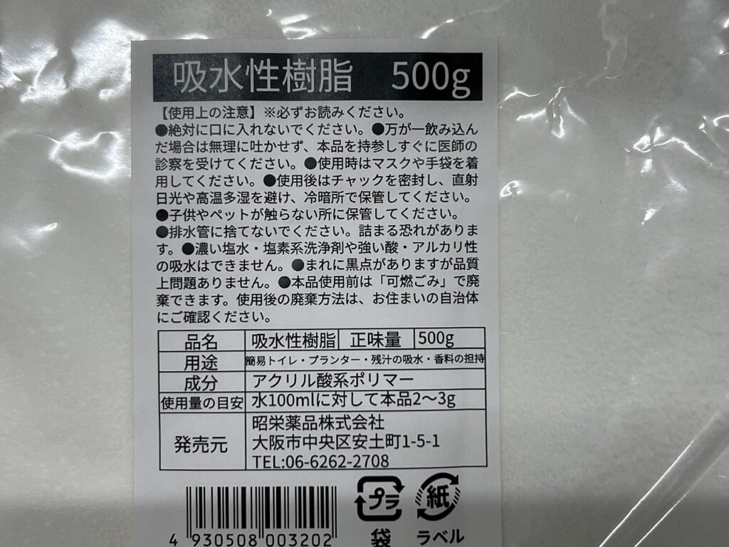 500g998円送料込み!昭栄薬品のリーズナブルなんだ吸水性ポリマーを賢くストック!緊急時の簡易トイレから日常の消臭・保水まで大活躍だよ(*´ω`*)