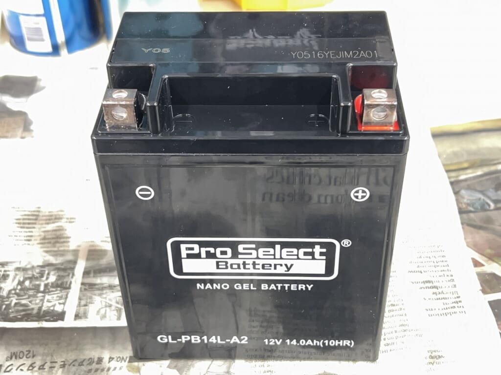 バッテリーは新品でフル充電!安心のプロセレクトバッテリーを今回も使うよ。