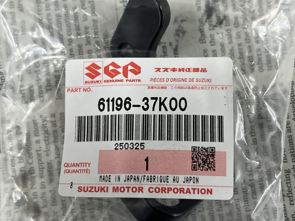 「純正部品流用NEWS」この樹脂ワイヤーガイドが秀逸!しかも180円!!スズキ61196-37K00。ブレーキホースを交換した際にどうぞ!