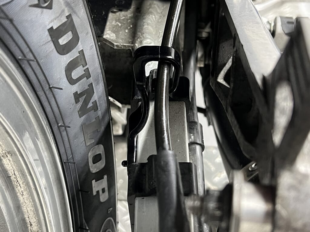 C形状になっているのでリアキャリパーメンテナンスする時も容易にガイドからホースを外せます。