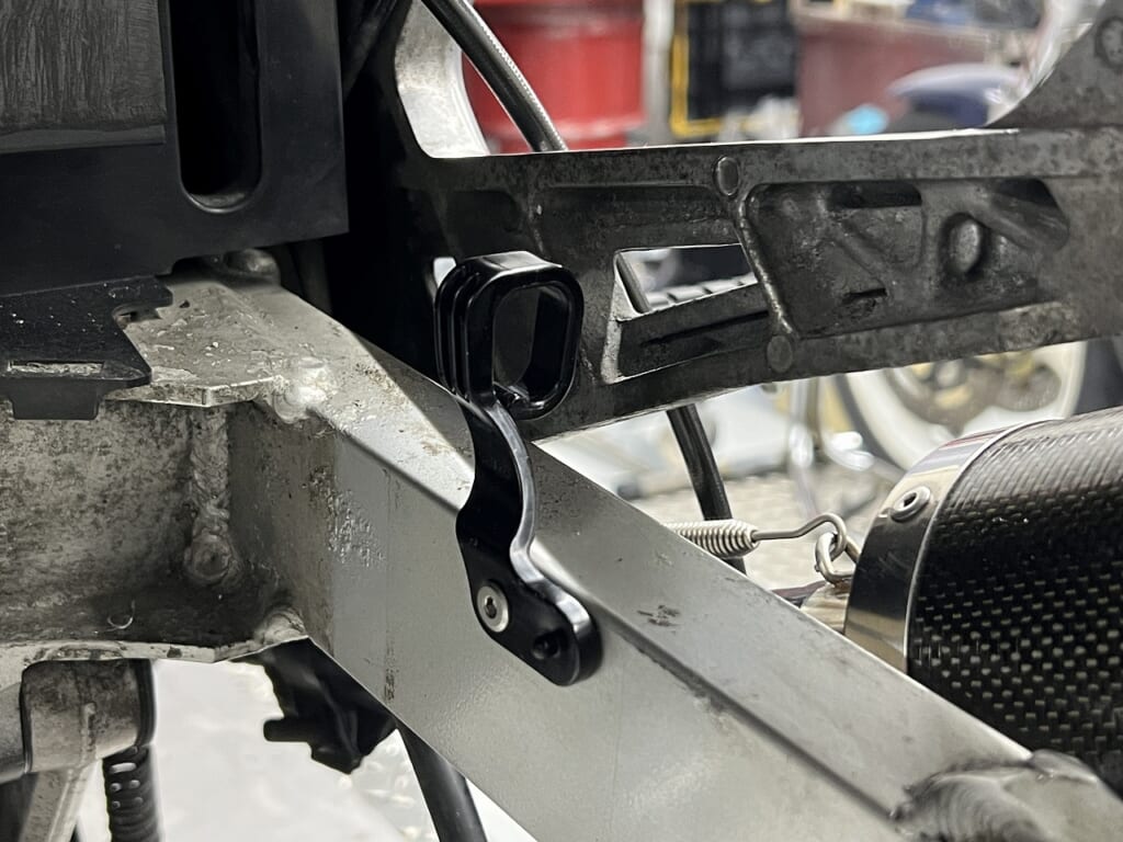 どうもリアブレーキホースの固定方法をよりシンプルに整備性良くしておきました。