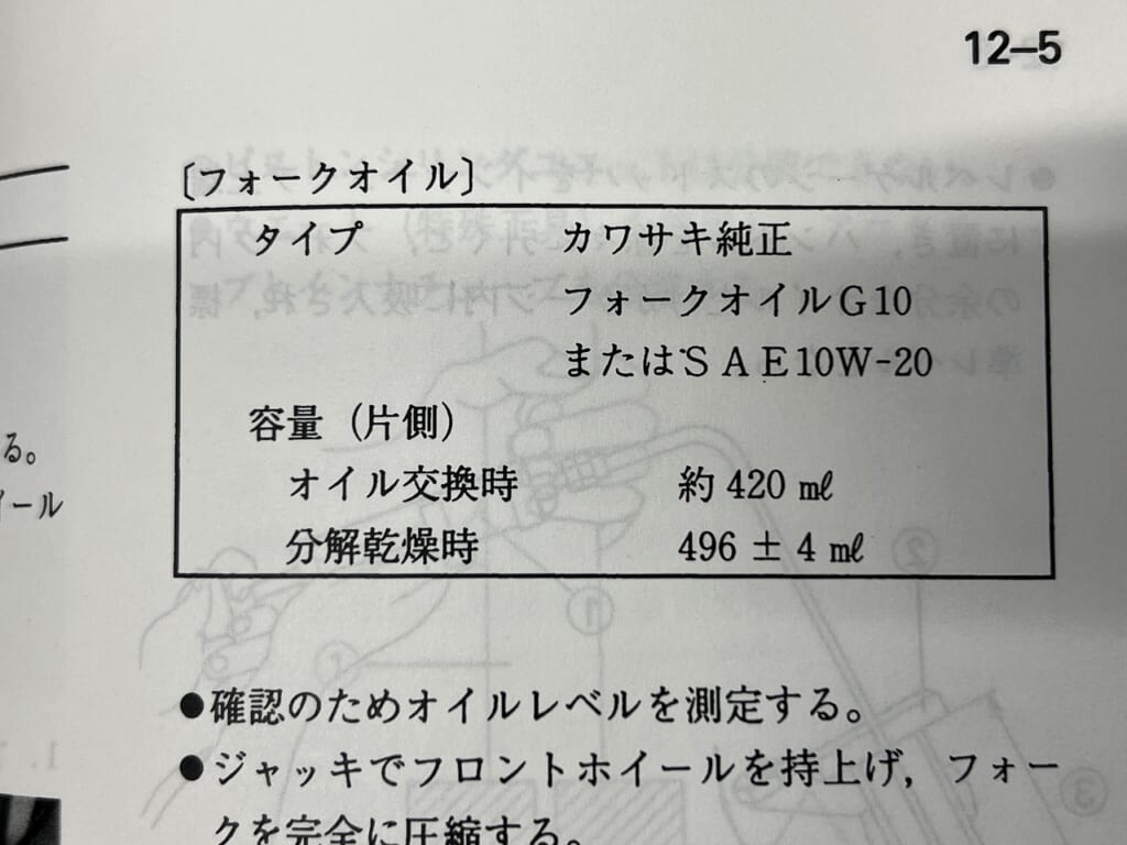 KAWASAKI GPZ900R A8-12 フロントフォークオイル油面/オイル