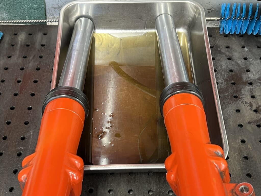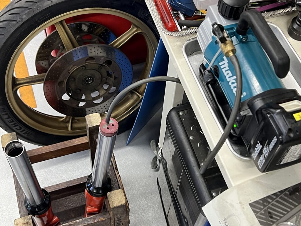 フォークオイル交換し真空引きをしてエア抜き。