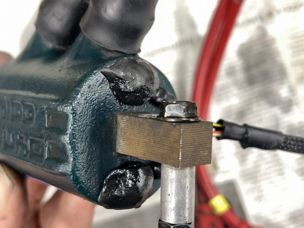 通常メインアースから2sqほどの線が出て、メインハーネス側アースと接続。