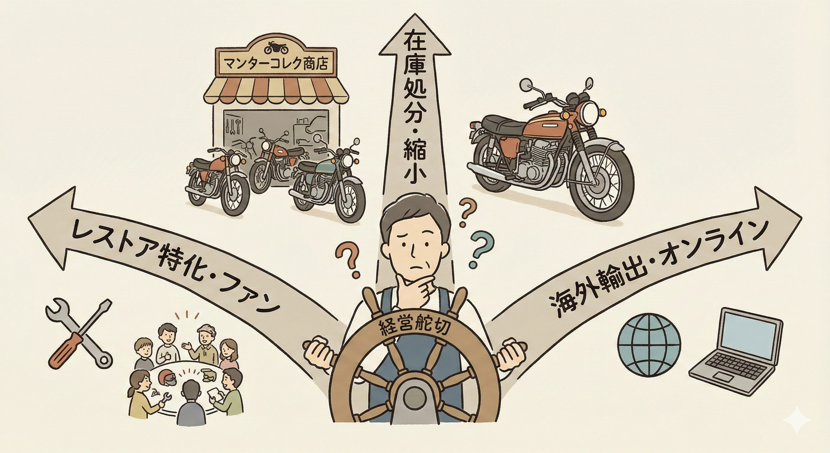 大量に旧車バイク在庫を抱えているバイクSHOPの今後の経営舵切は?