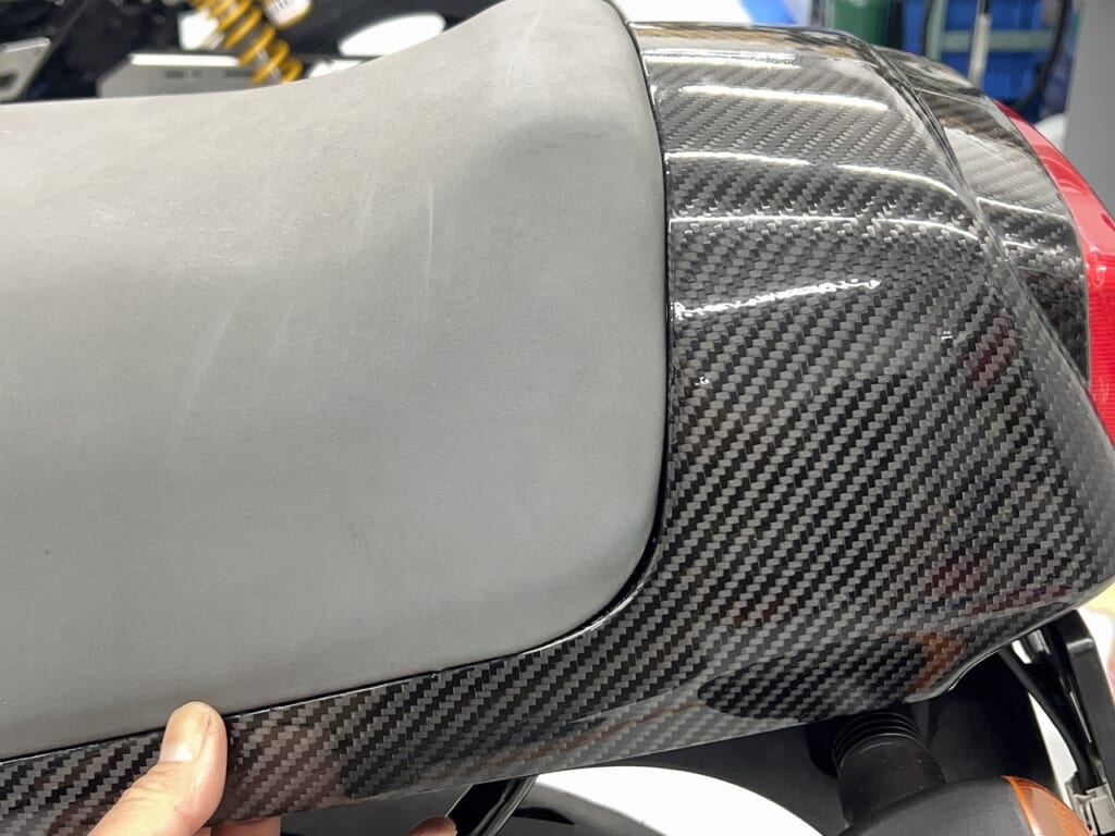 そうするとテールカウルの取付ベースが接触するのでシート裏の加工を沢山しなければいけません。