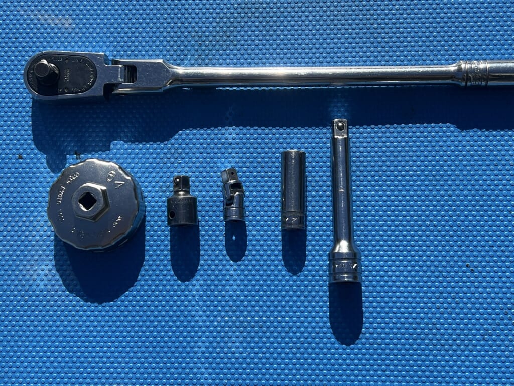 1/2のラチェットはオイルフィルターの場所が悪いので使いました。