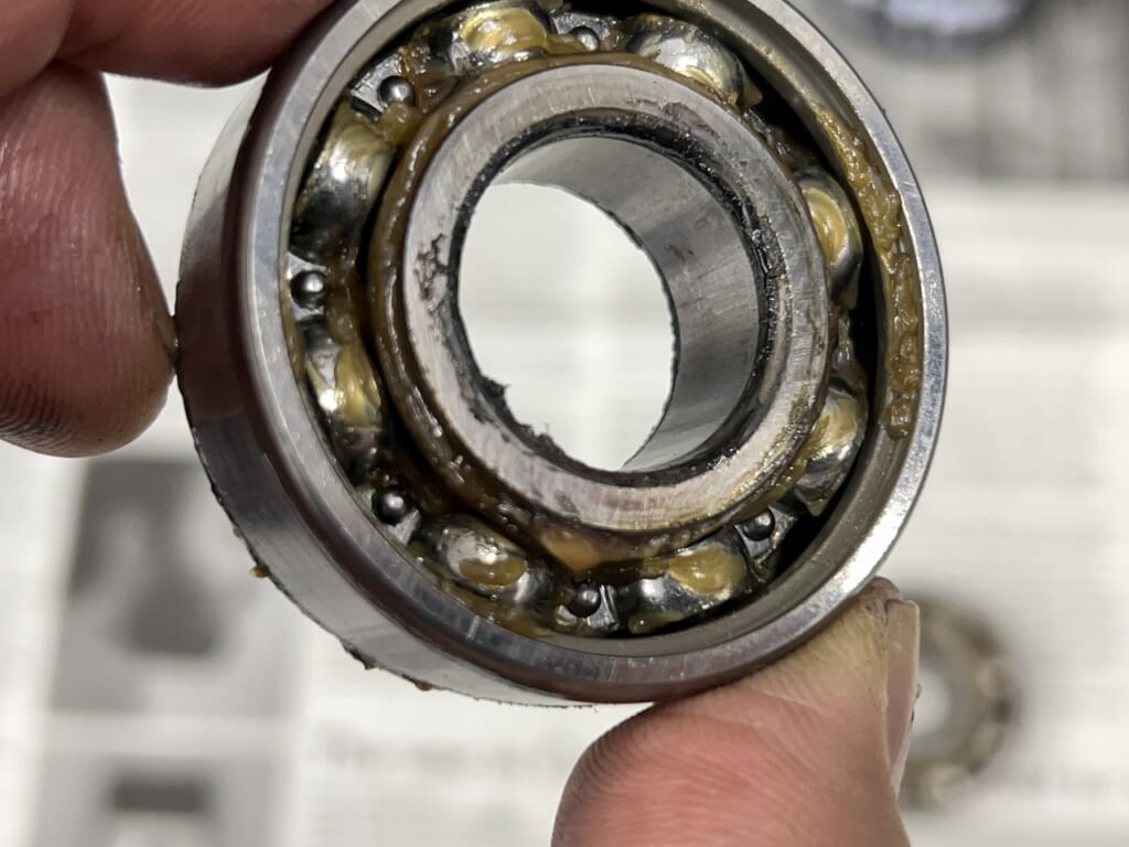 メーカー純正はだいたい内側は片面シールなのでグリスが両面よりは抜けやすいです。
